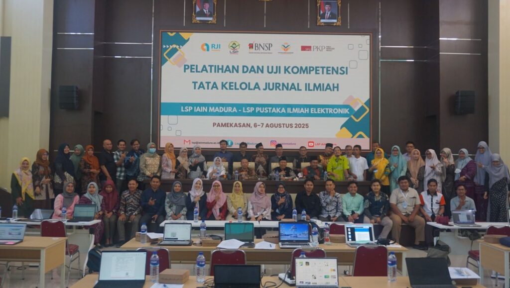 Kamis, 07 Agustus 2025 – Lembaga Sertifikasi Profesi Pustaka Ilmiah Elektronik (LSP PIE) mengadakan Uji Kompetensi Tata Kelola Jurnal Ilmiah. Bertempat di Ballroom Gedung Rektorat lantai 4, kegiatan ini diikuti oleh pengelola jurnal dari berbagai daerah termasuk diantaranya Surabaya, UIN Madura dan Poltekkes Kemenkes Yogyakarta. Acara ini merupakan kelanjutan dari program pelatihan yang sebelumnya telah diadakan terkait tata kelola jurnal ilmiah.
